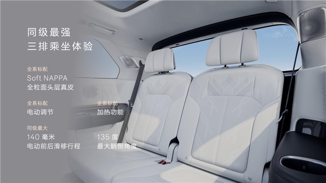 全车六把座椅均采用超柔NAPPA全粒面头层真皮。极氪9X的座舱设计给出了一个近乎完美的答案。